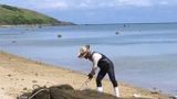 ここは普段は水がないのですが、昨日の雨で川ができ砂浜には砂州ができていました。