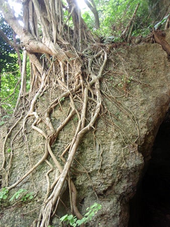 ガジュマルの木の根はうねうねと這いまわり、