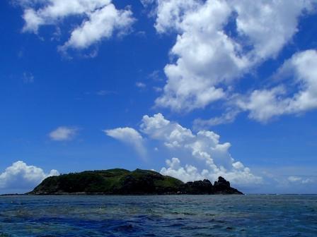 夏の雲とアジサシ君の島。