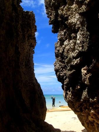 プライベートビーチへ ツアー@石垣島 X Facebook LINE LinkedIn コピー コメント 2013.09.12まだまだ観光シーズンの石垣島。ガイドブックに載っている場所はどこに行っても人、人、人!!そんな不満をお持ちのアナタ、誰もいなくてゆっくりできるビーチが石垣島にもありますよ~!青い空、青い海、白い砂浜、そして貸切。石灰岩が浸食されできたノッチ、心地よい日陰を提供してくれます。こんなアートも。熱帯、亜熱帯地方特有の石灰岩の海岸はまさに自然が生み出した芸術なのです。大自然の中でゆーっくりのーんびりしたい方、天然プライベートビーチ目指して漕ぎだしましょう~ナンペー