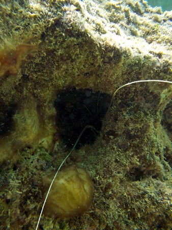 浅瀬に戻る頃、水深1mほどのキノコ岩の下には・・・