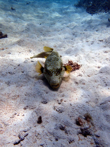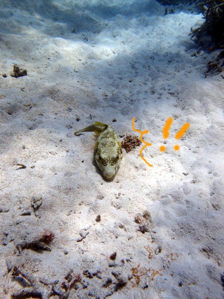 寝込みを激写 ツアー@石垣島 X Facebook LINE LinkedIn コピー コメント 2013.09.292025.05.31砂に同化した、と思っているフグピタッと海底に張り付いています。水面からの距離、約8m。ややや。変な奴来たぞ。って思ったかどうかは分かりませんが、 目覚めたようです!!!なんだよー(# ゚Д゚)と言わんばかりの億劫な表情をしたかどうかは分かりませんでしたが、ゆっくりとした動きでフワッと浮きあがり、泳いでいきました。邪魔して悪かったよ~でもそののろい動きがまたCuteさ~yuki