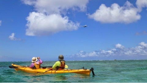 ワンウェイツーリング ツアー@石垣島 X Facebook LINE LinkedIn コピー コメント 2015.05.16はいさい!本日は南風をうけ北へとパドリング途中、珊瑚の海でシュノーケリング石垣の山々を眺めながらのシュノーケリングも気持ちいいものです。山から海への繋がりを感じますね。石垣空港がある白保はしばしばこんな景色も見れます。飛行機好きにはたまらないはず!うんてん