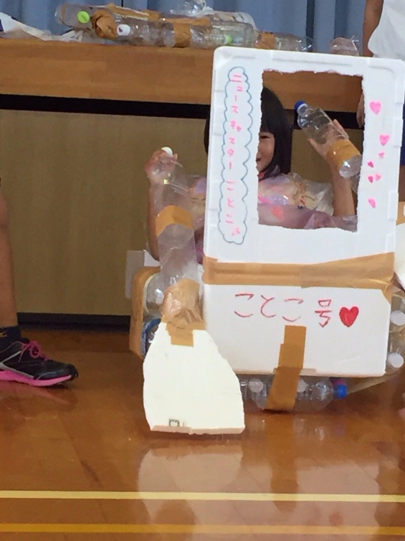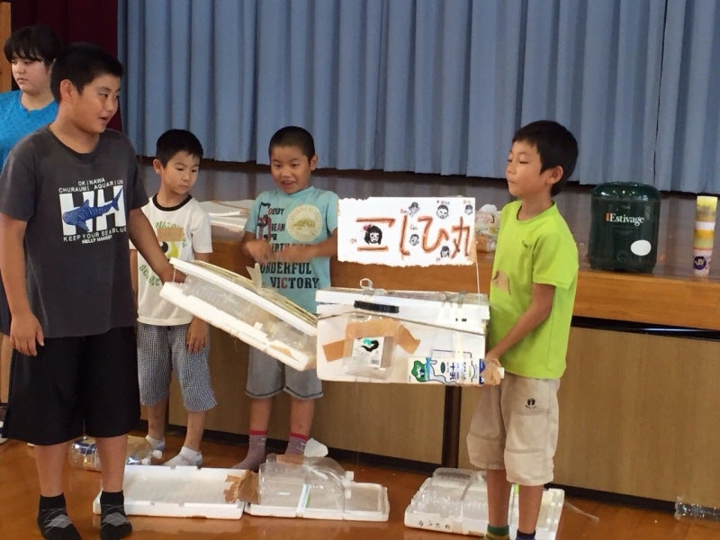 おもしろいことに、どのグループも発砲スチロールとペットボトルで筏を作っていたのですが、完成品の見た目は見事バラバラ。