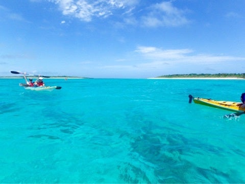 海がエメラルドに輝きすぎて目がチカチカします笑
