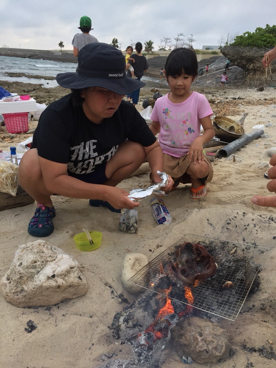 ざっと綺麗になったら、流木でワイルドバーベキュー。