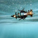 履いていたウエットスーツはそのまま腕を通すことなく、泳ぎまわりました。